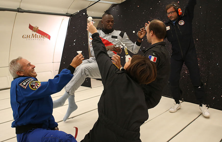 Pushing the boundaries of possibility, daring, taking on challenges and looking ahead are both what this innovation represents for Maison Mumm, and what has always driven it – just like Usain Bolt, the Maison’s C.E.O. (Chief Entertainment Officer) since 2016. Usain Bolt was of course present in Reims, alongside the Maison, for this momentous occasion. During the parabolic flight, he discovered the pleasures of champagne in zero gravity, before returning to Earth to celebrate.