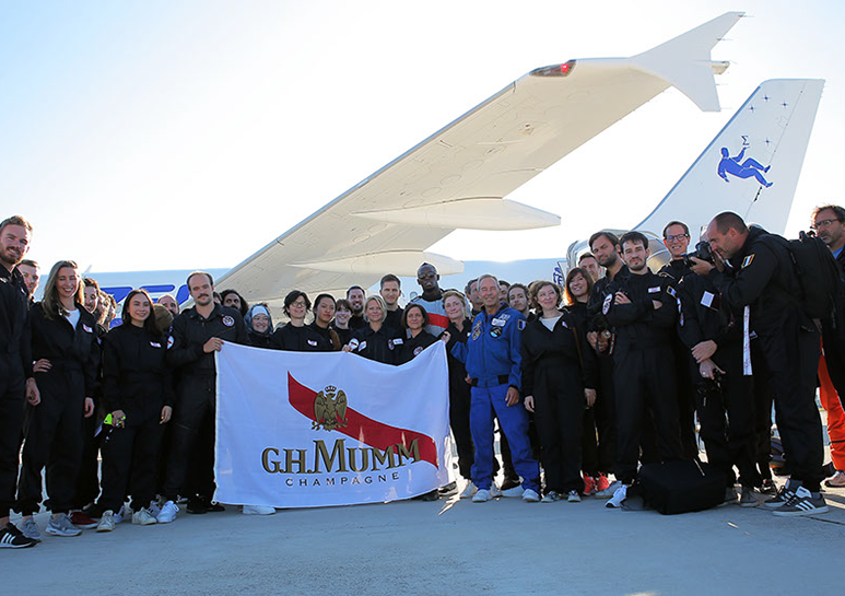 It took three years of research and experimentation to develop Mumm Grand Cordon Stellar, the first champagne designed to be tasted in space. For this world premiere, Maison Mumm symbolically chose to fly over the vineyards of Reims to present its innovation during a zero-gravity flight.
